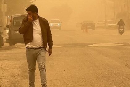 Suriye üzerinden gelen toz bulutu Şanlıurfa merkez ve sınır ilçesi Ceylanpınar'da gökyüzünü kapladı. Hayatı olumsuz etkileyen toz bulutundan korunmak için bazı vatandaşlar maske ile gezdi....