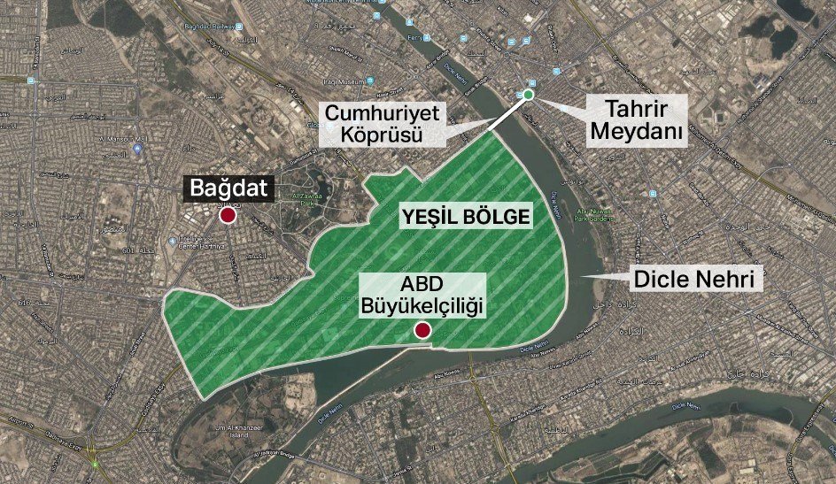 Bağdat’ta hükümet binalarının bulunduğunu korunaklı Yeşil Bölge’deki ABD Büyükelçiliğine giren göstericilere ilk müdahale elçiliğe ait güvenlik güçleri tarafından gerçekleştirildi.