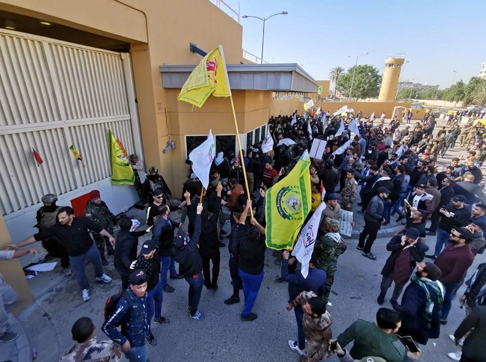 ABD‘nin Bağdat Büyükelçiliği önünde toplanan Irak’taki Şii milis gücü Haşdi Şabi taraftarları elçiliği işgal etti.