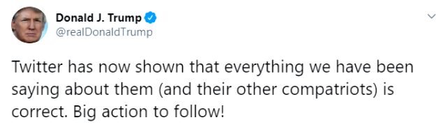 Donald Trump, ardından attığı tweette de “Twitter, hakkında ve çalışanları hakkında söylediğimiz her şeyin doğu olduğunu gösterdi” ifadelerini kullandı.