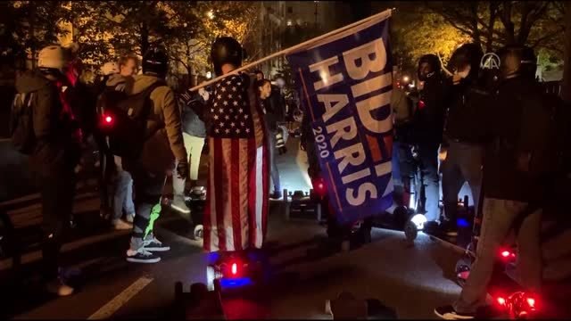 Kritik eyaletlerdeki oyların ABD’den 46. başkanı belirleyeceği seçimde ülke genelinde gerginlik giderek tırmanmaya devam ediyor. Cumhuriyetçilerin adayı Başkan Donald Trump ile Demokratların adayı Joe Biden arasında çekişmeli mücadelelere sahne olacak seçim sonuçları öncesi sokağa dökülen protestocular, eylemlerini sürdürüyor.