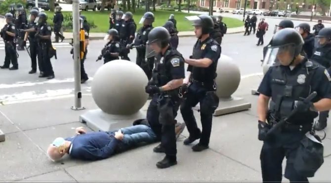 ABD’de George Floyd’un öldürülmesinin ardından ırkçılık ve sistematik şiddete karşı protestolar devam ederken New York eyaletine bağlı Buffalo’da çekilen bir görüntü büyük tepki çekti.