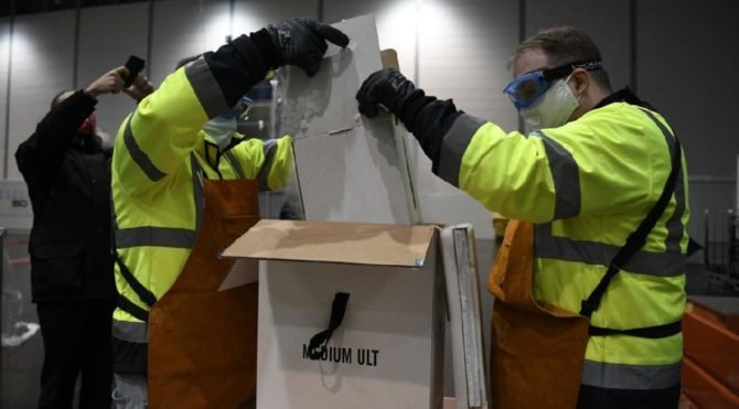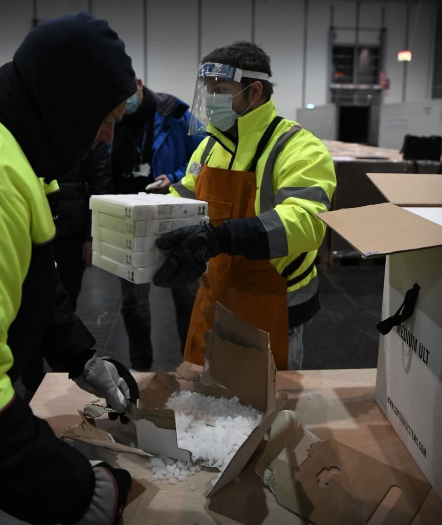 Aşılar, kuru buz içinde özel yapılmış kutularda getirildi. Tek tek not alınarak çıkarıldı ve buradan 53 bölgede aşı yapılacak yerlere dağıtılacak. Bugün bütün eyaletler aşılarını alacaklar ve yarın öğlene doğru aşılama başlayacak.