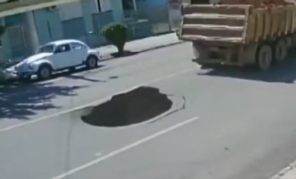 Brezilya’nın Flores da Cunha şehrinde asfalt yolda toprak yüklü bir kamyon, seyir halindeyken ağırlığından dolayı yolda çökmeye neden oldu.