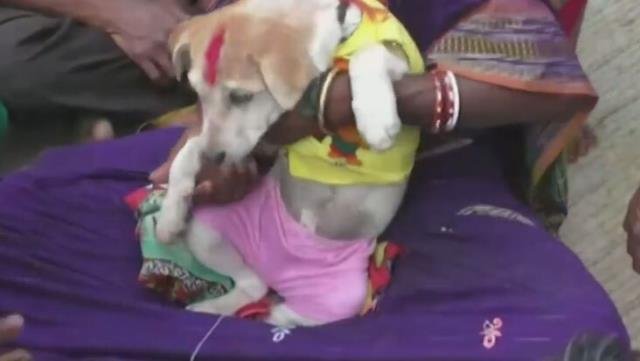 Hindistan’ın Mayurbhanj bölgesinde biri 6 yaşında diğeri ise daha bebek olan iki çocuğun, aynı anda üst dişi çıkarması aileleri paniğe soktu. Bu durumun kötüye işaret olduğunu düşünen aileler, uğursuzluğu ve kötü ruhu uzaklaştırmak için çocukları dişi köpeklerle evlendirdiler. İki erkek çocuğunun damat, gelinlerin ise köpek olduğu düğün törenine çok sayıda misafir katıldı.