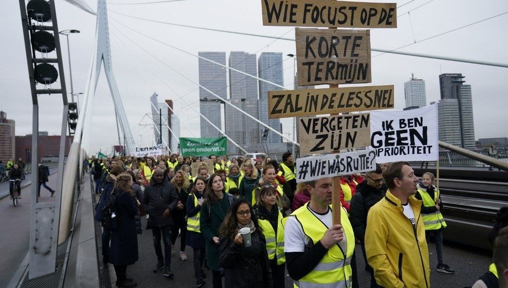 Hollanda’da hükümetin geçen hafta ilköğretim eğitiminde iş koşullarının ve maaşlarının iyileştirilmesiyle öğretmen açığının kapanması için 460 milyon euro bütçe ayırdığını açıklamasına rağmen bazı sendikalar ve öğretmenler grev yapmaktan vazgeçmedi.