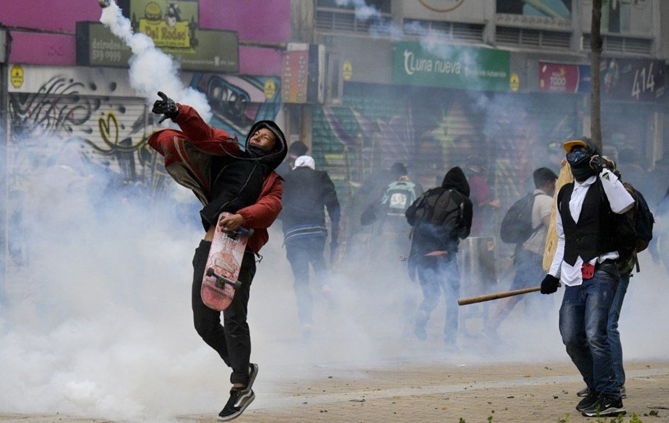 Bogota’daki son gösterilerde güvenlik güçleri kalabalığa gözyaşartıcı gazla müdahale etti. Yaşanan olaylarda bazı eylemciler geçici olarak yolları kapadı.