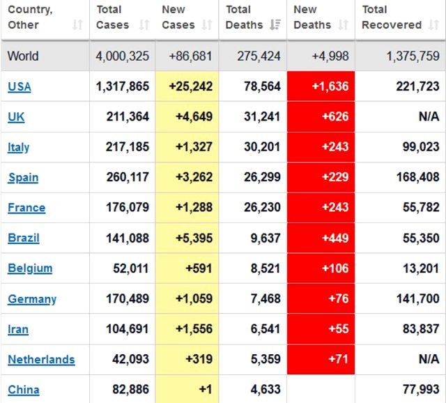 Anasayfa / Dünya / Koronavirüs salgını yavaşlasa da bitmiyor! Vaka sayısı 4 milyonu aştı