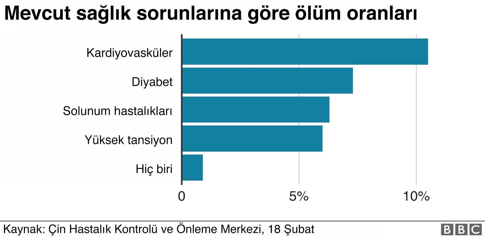 BBCÇin’deki 44 bin vakanın ilk büyük analizine göre, diyabet, hipertansiyon, sağlık ve solunum problemleri olanlardaki ölüm oranları beş kat daha fazla.