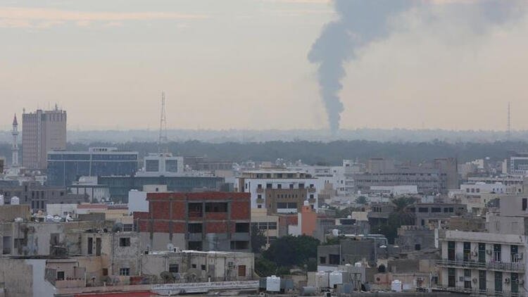 Hafter milislerinin havan saldırısında petrol tankerleri isabet almış, yangın çıkmış ve başkent semalarında siyah dumanlar yükselmişti.