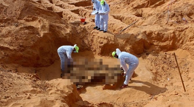 UMH’nin bölgeyi ele geçirmesinin ardından başlatılan çalışmalarda Tarhuna’da yeni toplu mezarlar bulundu. UMH’nin kayıplar bürosuna bağlı olarak çalışmalarını yürüten uzmanlar, dört toplu mezar daha tespit etti. Reuters’ın görüntülediği ve uluslararası kamuoyunun gözleri önüne serdiği mezarlarda 12 kişinin cesedine ulaşıldı.