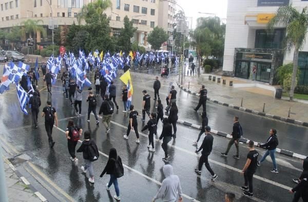 Güney Lefkoşa’daki Ledra Caddesi’nde toplanan Rumlar, Türkler aleyhine slogan atarak eylem yaptı. Yunan bayrakları taşınan eyleme Türklere karşı ırkçı eylemleriyle öne çıkan ELAM da destek verdi.