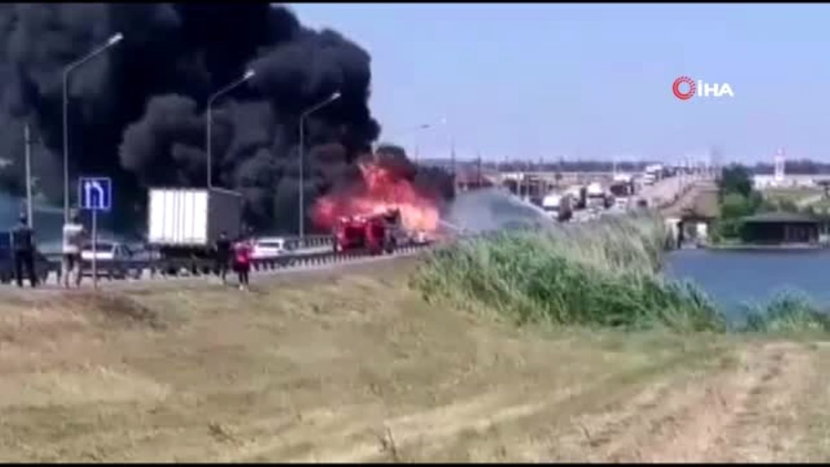 Rusya’nın Krasnodar kentinde bulunan Yugo-Severnaya ile Tikhoretsky arasındaki yolda seyir halinde bulunan bir yük kamyonunda yangın çıktı.