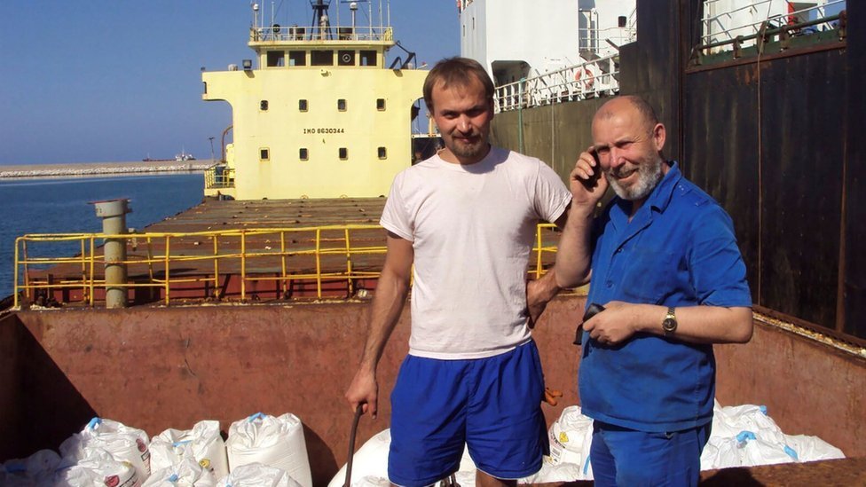 ReutersGeminin kaptanı Boris Prokoşev, mürettebattan birkaç kişiyle rehin tutulduklarını söylüyor.Kimsenin istemediği gemi