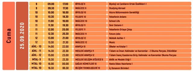 25 EYLÜL LİSE CANLI DERS SAATLERİ
