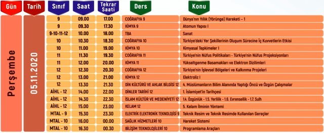 5 KASIM LİSE CANLI DERS SAATLERİ