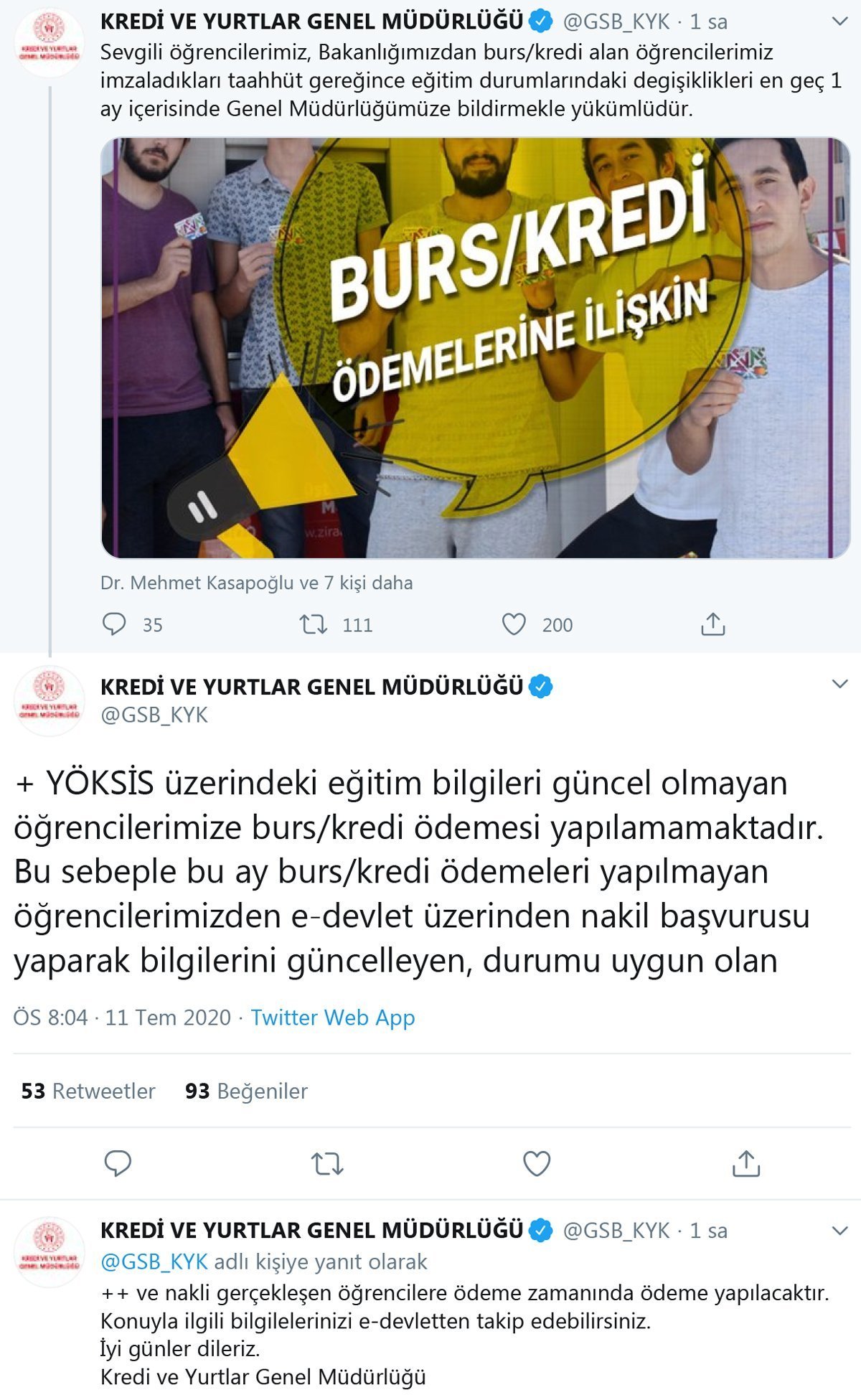 Kredi ve Yurtlar Genel Müdürlüğü’nün açıklamasında şu ifadeler yer aldı: