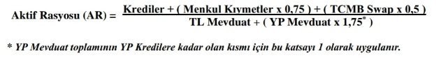 YP kredileri aşan kısmına ise 1,75 katsayısının uygulanmasına, bu çerçevede AR formülünün aşağıdaki şekilde revize edilmesine karar verildi.