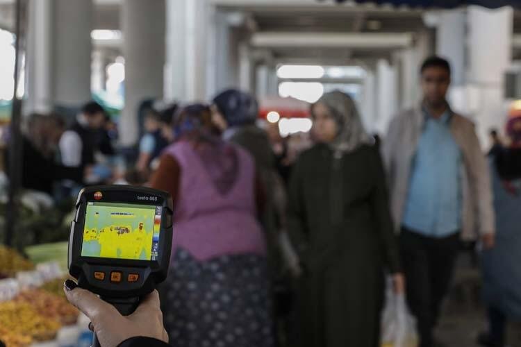 Aslında normal bireysel kullandığımız sıcaklık ölçerler ile hiçbir farkı yok. Tek fark termal kameralarda görüntüleme sistemi ve soğukların mavi tonlarda sıcak renkleri kırmızı tonlarında gösteriyor. Bir örnek veriyorum, 50 kişilik bir gruba baktığımız zaman, sıcaklık değeri renk skalasına göre belirlendiği için o skalaya göre farklılıklar yani hangisi daha kırmızı görünüyorsa onu belirlemenizi sağlıyor. Ayrıca noktasal olarak hedefleme vardır termal kamerada, geçen her kişiyi otomatik olarak kontrol eder. 50 kişi sırasıyla geçiyorsa, onların vücudundaki en sıcak ve en soğuk noktayı görür. 38 derecenin üzerine çıkan yüksek ateşlerde, ön müdahale yapılabilir ama bireysel olarak teşhis koyma imkanınız yoktur. Ürünlerin üretici ve distribütör kaynaklı maalesef çok büyük stok sıkıntıları var. halkımıza ricamız, bilinçsiz yere termal kamera almayın, kullanmayın. Ayrıca nerede hangi ürünü kullanacağınızı bilin”