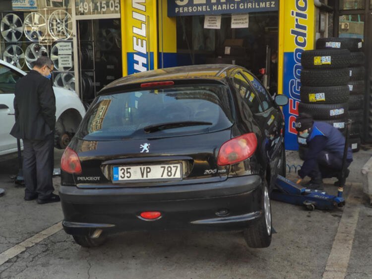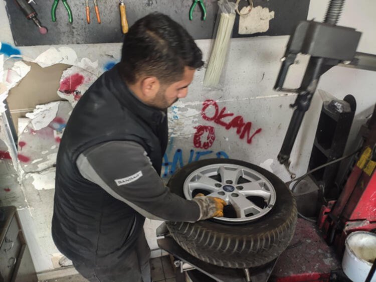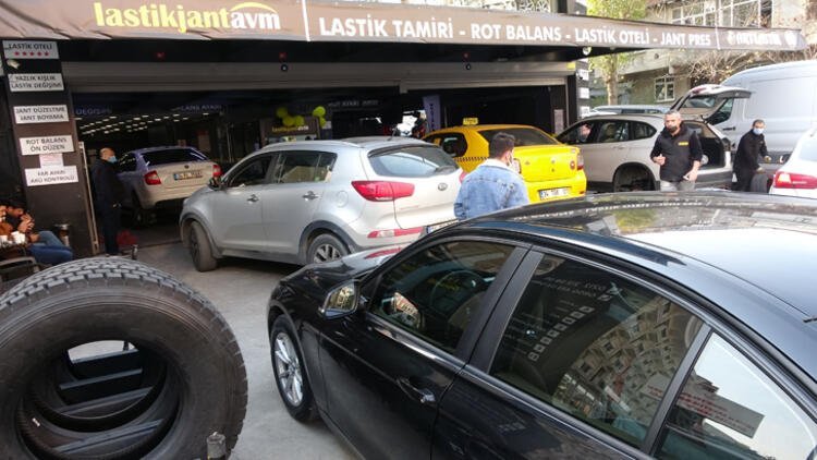 Kimi sürücüler açlarına ilk kez satın aldığı kış lastiklerini taktırırken kimileri de yanlarında getirdiği kış lastiklerini yaz lastikleriyle değiştirdi.