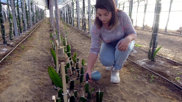 Tadını beğendiği ejder meyvesini internetten araştıran Tunçay, yetiştirmeye karar verdi. Tunçay, bu fikrini annesi Naciye Tunçay’a açtı.