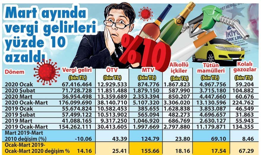 2019 Mart’ında alkol ve tütünden toplanan ÖTV 3.316.896.000 TL iken 2020 Mart’ında 5.297.867.000 TL oldu. Bu durumda geçen yıla göre alkol ve tütünden alınan ÖTV’de yüzde 60 artış vardır demek sayısal olarak doğru ancak herkes evine kapanmışken, restoran ve kafeler kapalıyken alkol ve sigara tüketiminin arttığını söylemek yanlıştır.