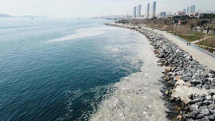 İstanbul'da Anadolu Yakası'nda tedirgin eden görüntü... Pendik ve Kartal sınırında kalan sahil şeridinde deniz yüzeyindeki kirlilik endişe yarattı. Pisliğin atık su kanalından denize ulaştığı belirtil...