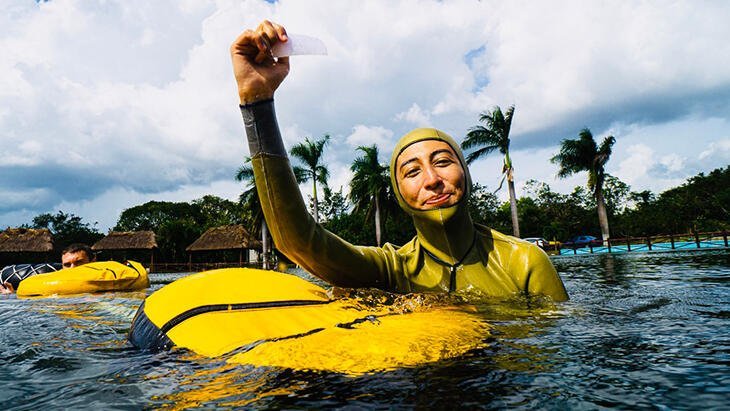 Fatma Uruk Meksika’da rekorlar kırmaya devam ediyor. Rekor deneyişlerinin ilk gününde paletsiz değişken ağırlık dalışta 72 metre derinliğe ......