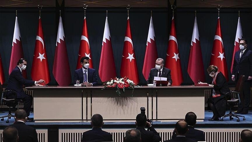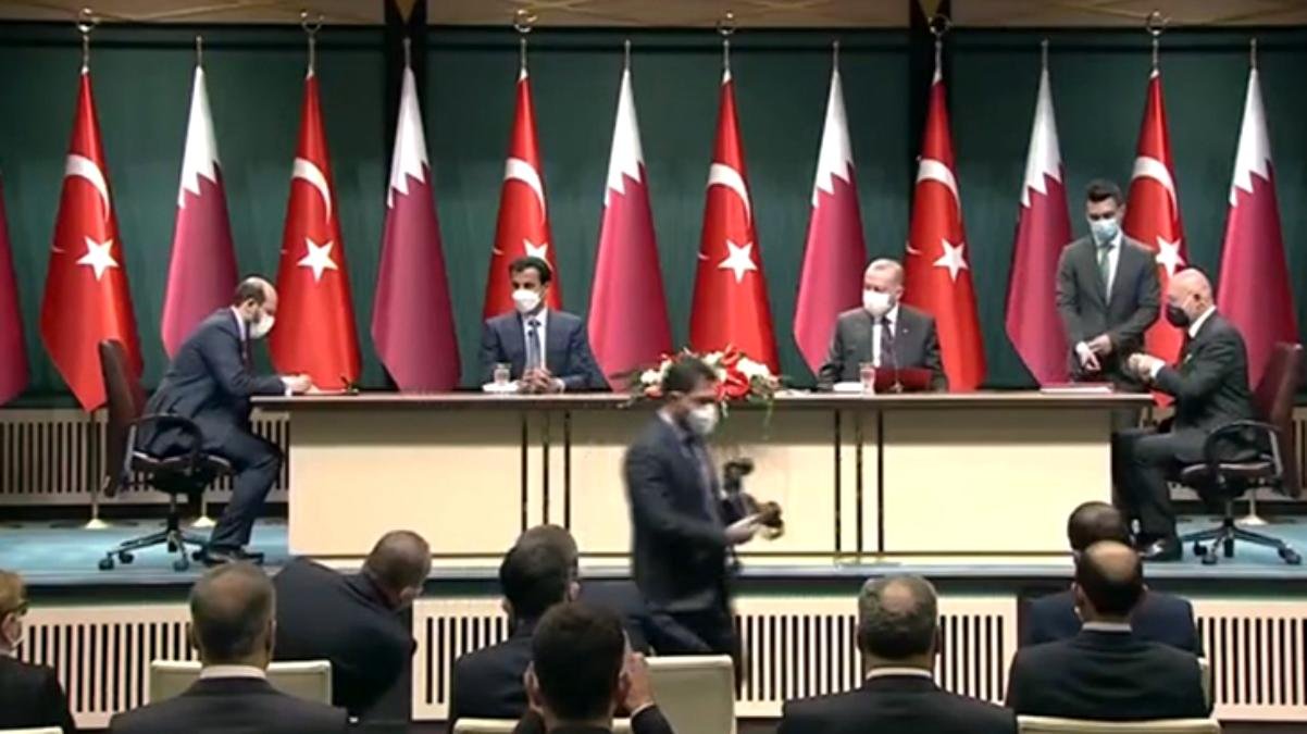 Türkiye Cumhurbaşkanı Recep Tayyip Erdoğan ve Katar Emiri Şeyh Temim bin Hamad Al Sani'nin huzurunda iki ülke arasında 10 anlaşma imza altına ......