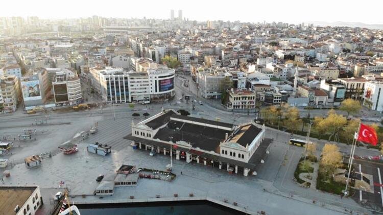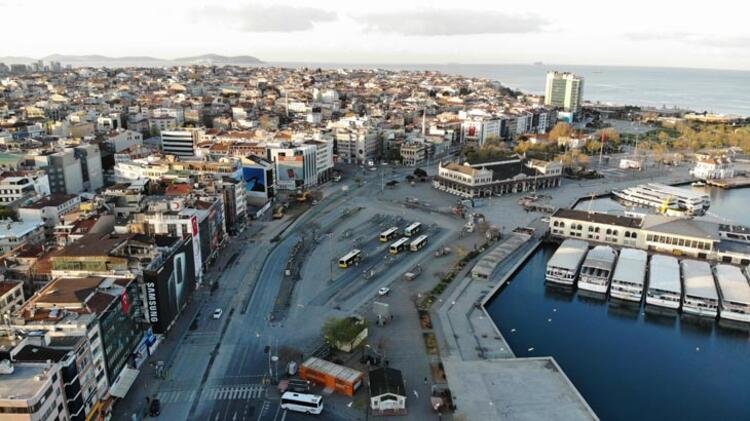 Kadıköy meydanı gibi vatandaşların yoğun bulunduğu alanlar da boş kaldı. Boş kalan meydan ise drone ile görüntülendi.