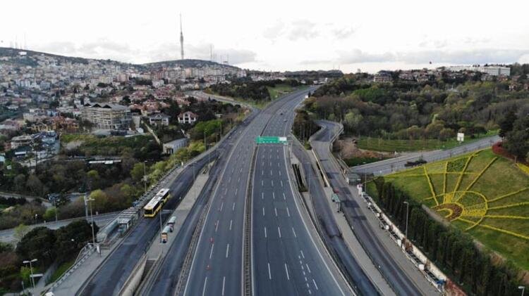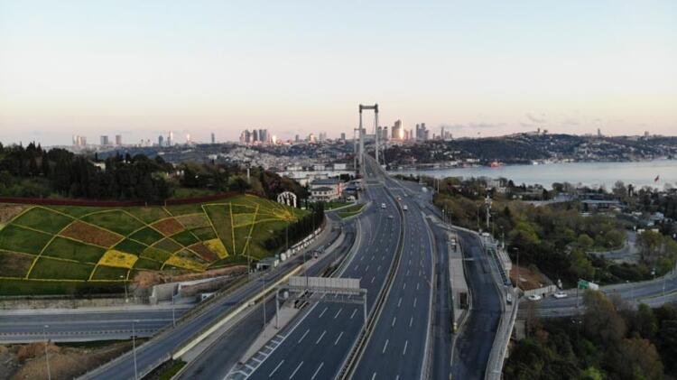 Boş kalan 15 Temmuz Şehitler Köprüsü ise drone ile havadan görüntülendi.