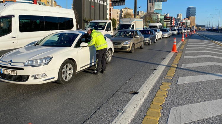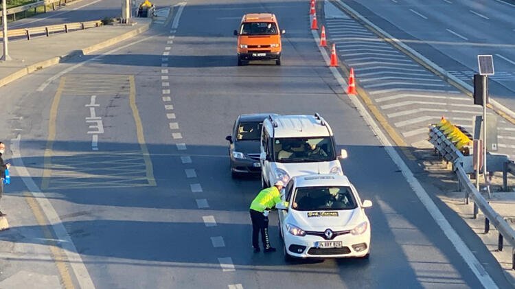 Sokağa çıkma yasağının ilk gününde sabah saatlerinde güvenlik noktası oluşturan polis ekipleri, Kadıköy D-100 Karayolu Ankara istikametinde yolu keserek denetim yaptı.