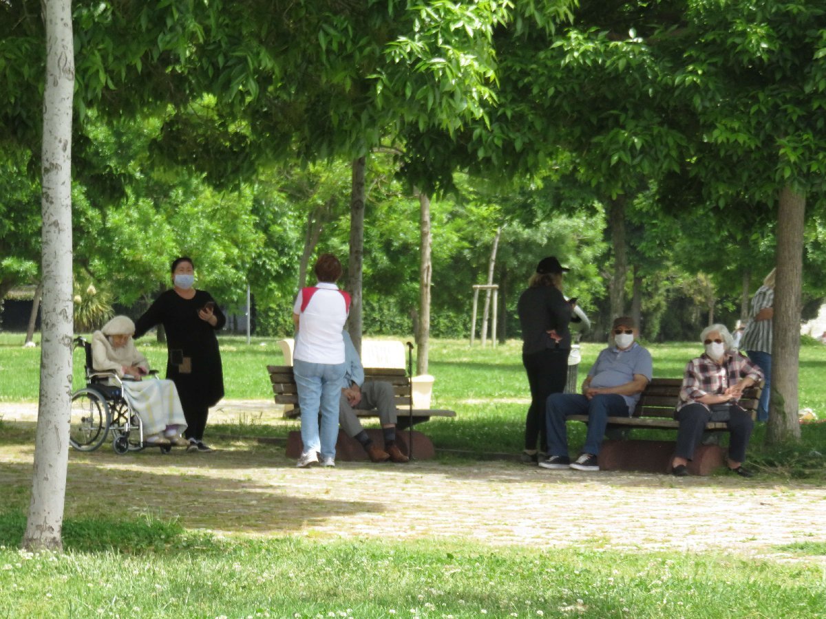 Ankara’da 65 yaş üzeri vatandaşlar parklara akın etti. Çankaya ilçesindeki Kuğulu Park’a gelenler, banklara oturup, parkta gezen kedileri besleyerek, güneşli havanın keyfini çıkardı. Sosyal mesafe kuralına uyulup, maske takıldığı gözlendi.