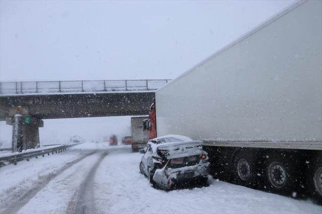 Kaza nedeniyle otoyolda araç kuyrukları oluşurken, sürücüler yolun açılmasını bekliyor. Karayolları ve polis ekipleri, yolu trafiğe açmak için çalışmalarını aralıksız sürdürüyor.
