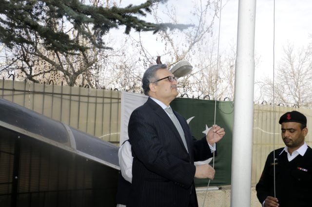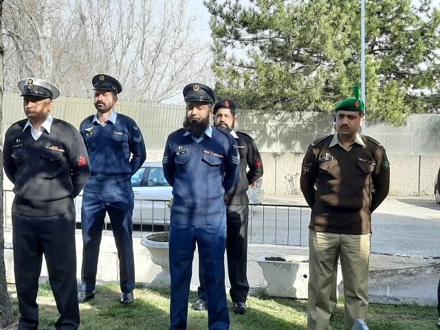 Pakistan Milli Günü’nü kutlamak için bugün Ankara‘daki Pakistan Büyükelçiliğinde göndere bayrak çekme töreni düzenlendi. Koronavirüs salgını dolayısıyla kamu alanında yapılacak toplantılara dair yayınlanan yerel yönetmelikler dolayısıyla, törene sadece Büyükelçilik mensupları katıldı. Pakistan’ın Türkiye Büyükelçisi Sayın Muhammad Syrus Sajjad Qazi Pakistan Milli Marşı eşliğinde Pakistan bayrağını göndere çekti.
