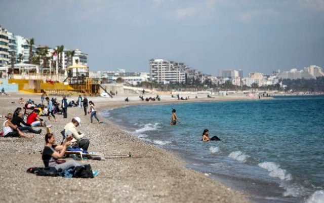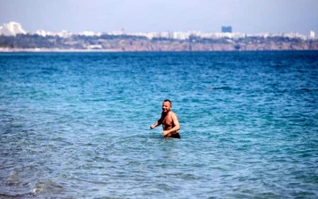Turizm kenti Antalya‘da hava sıcaklığı 25 dereceyi gösterince kent sakinleri Konyaaltı
