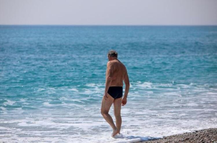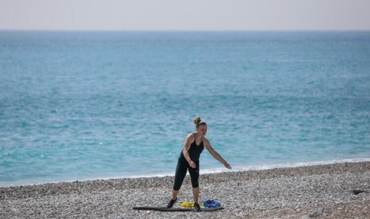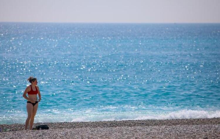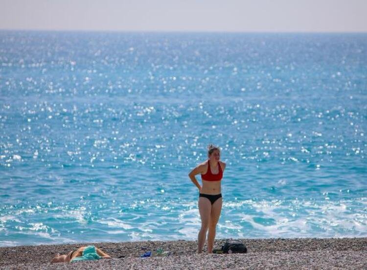 Hava sıcaklığının 19 derece olduğu turistik kentte, az sayıda turist de denize girip yüzdü. Bazı vatandaşlar da sosyal mesafeyi koruyarak sahildeki banklarda ve kumsalda oturmayı tercih etti.