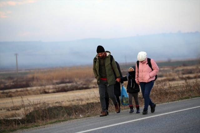 Avrupa sınırındaki kentin pek çok noktasında gruplar halinde aralarında kadın ve çocukların da olduğu düzensiz göçmenler sınır köylerine doğru yürüdü.