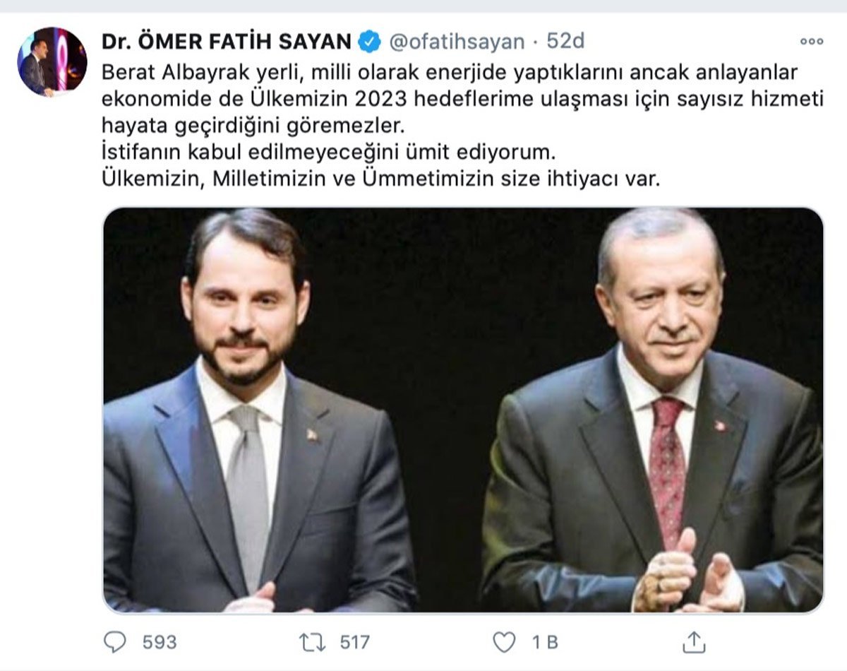 *Bakanımız Sayın Berat Albayrak çok zor bir süreçte görev üstlendi. Kendi ayakları üzerinde duran milli bir ekonomi için önemli adımlar attı.