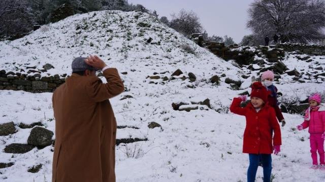 Milas’ta sabah saatlerinde yüksek kesimlerde kar yağışı görüldü. Milas genelinde yüksek kesimlerde yer alan birçok mahallede kar sevinci yaşandı. En son 1979 ve 1987 yıllarında kar yağan Milas’taki Alatepe, yıllar sonra beyaz örtüye büründü. Bir yanda Ören sahili, diğer yanda Gökova Körfezi’ni içine alan kar manzarası doyumsuz görüntüler oluşturdu. Milas’a bağlı Kalem Mahallesi’nde de tam 35 yıl sonra kar yağdı. Mahalleli, çocuklarla kartopu oynadı, kardan adam yaparak keyifli anlar yaşadı. Trafik polisleri ise ilk kez kar gören çocuklarla kartopu oynayıp, kardan adam yaptı.
