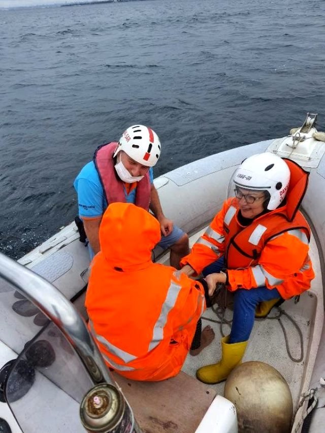 Kadının yanına giden DAK-SAR ekibi, aynı zamanda Sahil Güvenlik Komutanlığı teknesine ve destek için yola çıkan diğer ‘gönüllü botu’na haber verdi. Fakat, yanına gelen 3 bot personelinin tüm ikna çabalarına rağmen kadın suda kalmaya devam etti. DAK-SAR gönüllüsü, büyük çaba harcayarak kadını hayatının tehlikede olduğu konusunda ikna etti. Bota çıkarılan kadın 112 sağlık ekibine teslim edildi.
