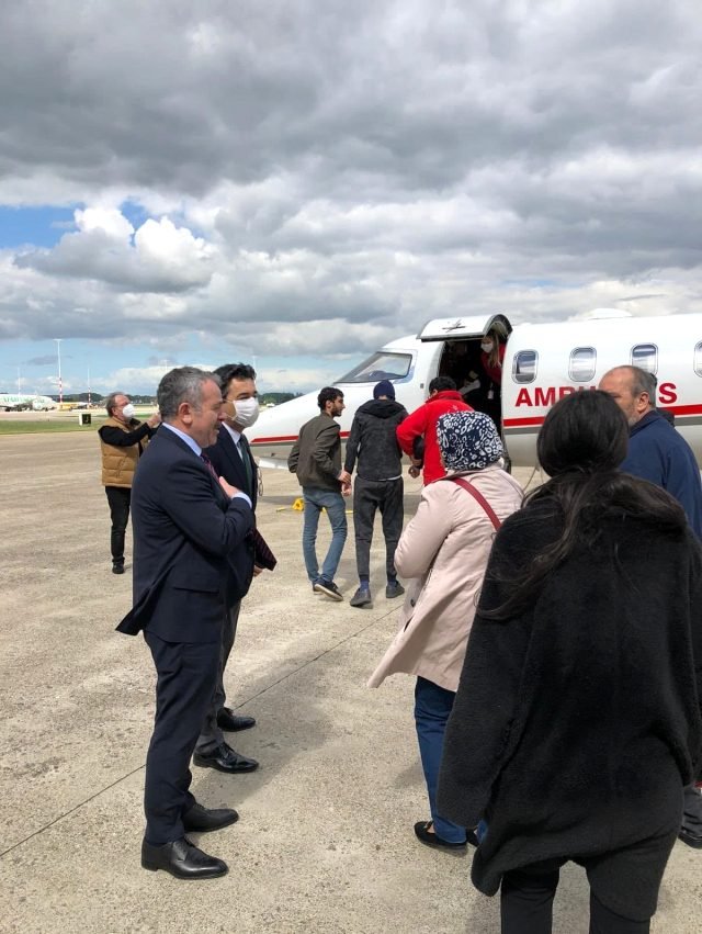 AMBULANS UÇAKLA TÜRKİYE’YE GETİRİLDİ