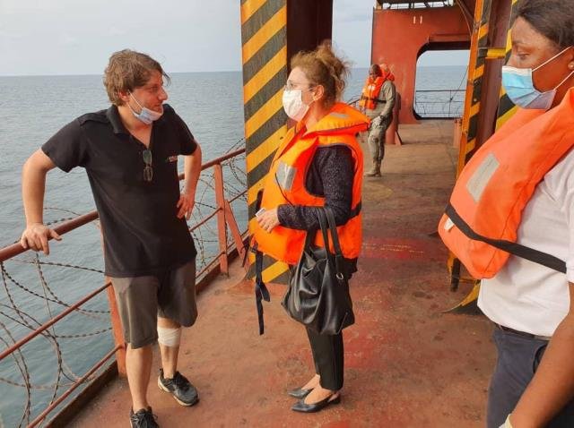 Türkiye’nin Librevil Büyükelçisi Nilüfer Erdem Kaygısız, Nijerya açıklarındaki Gine Körfezi’nde seyir halindeyken deniz korsanları tarafından kaçırılan “Mozart” isimli Türk konteyner gemisinin mürettebatıyla görüştü. Büyükelçi Kaygısız Twitter’dan yaptığı paylaşımda, Gabon’un Gentil Limanı’na demirleyen geminin mürettebatıyla fotoğraf paylaştı.