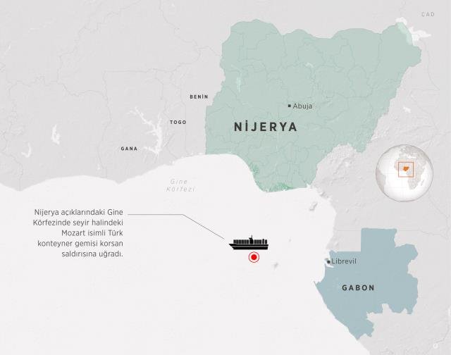 Nijerya açıklarındaki Gine Körfezinde seyir halinde bulunan Mozart isimli Türk konteyner gemisi, deniz korsanlarının saldırısına uğramıştı.