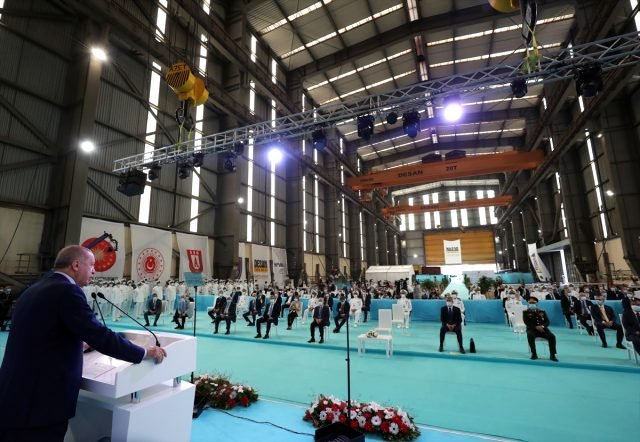 Erdoğan, şunları söyledi “Gemi inşa sektörü burada. Ben şimdi buradan size sesleniyorum. Anadolu’yu inşa ettik. Şimdi gelin artık 1 veya 2 veya daha fazla uçak gemisi de inşa edelim. Herhalde yaparız değil mi?Çünkü denizlerde bu caydırıcılığa ihtiyacımız var. Bu adımı da atmamız lazım.”