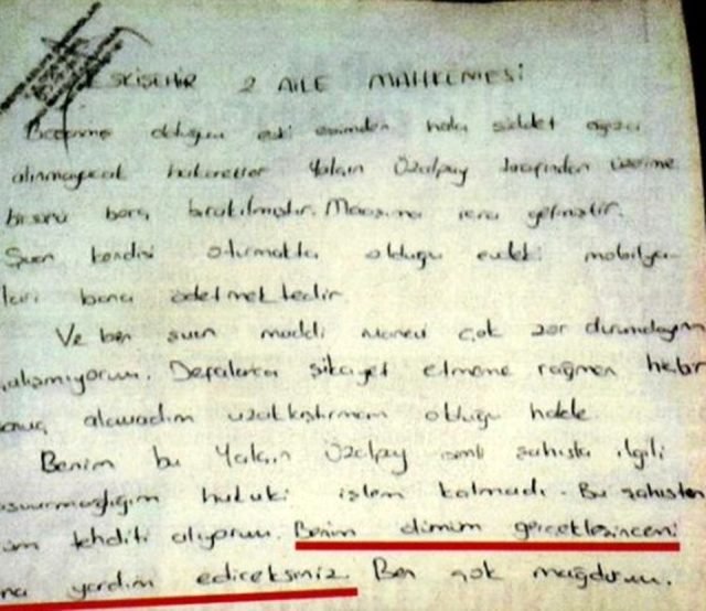 Arslan’ın daha önce yine savcılığa başvurduğu dilekçesinde şu ifadelere yer vermişti: “Tedbir kararı olmasına rağmen Yalçın Özalpay fiziksel şiddet göstermeye devam ediyor. Hayatımdan endişe ediyorum, Her gün işe giderken beni takip ediyor, yalnız sokağa çıkamıyorum. Uzaklaştırma kararı olduğu halde zorla evime girdi, ben evi terketmek zorunda kaldım. Çünkü fiziki şiddet uyguluyor ve tecavüz ediyordu, dayanamadım artık. Benim can güvenliğim yok, dayanacak gücüm kalmadı…” Arslan dilekçenin sonuna da “Tek başıma ayaklarımın üzerinde durmaya çalışıyorum” notunu düşmüş ancak bundan da bir sonuç alamamıştı.