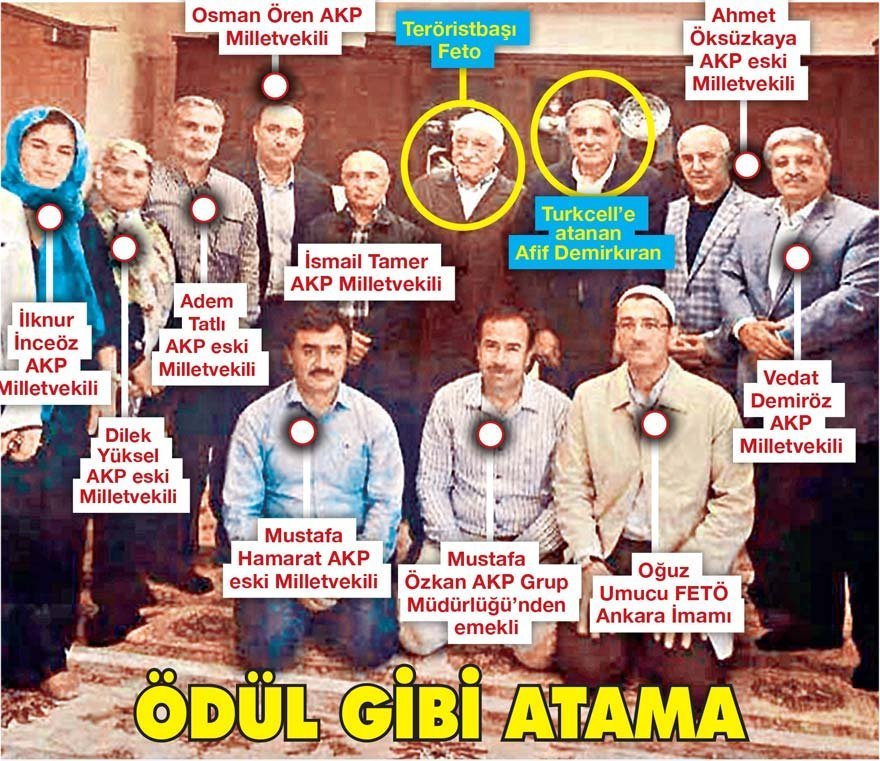 Son olarak fotoğrafta FETÖ elebaşının hemen sağında yer alan AKP’nin eski Siirt Milletvekili Turkcell’e yönetim kurulu üyesi yapıldı. 11 Mart’ta göreve başlayacak olan Demirkıran tam 20 bin Euro (Yaklaşık 138 bin TL) maaş ve 200 bin TL harcırah alacak.