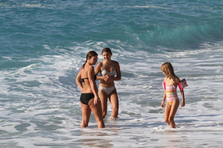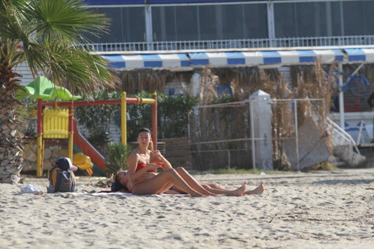 Kumlara, şezlonglara uzanan tatilciler, kitap okudu ve uzun süre güneşlendi. Sahilde yürüyen çiftler ve oyun oynanan çocuklar ise renkli görüntüler oluşturdu.