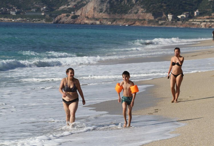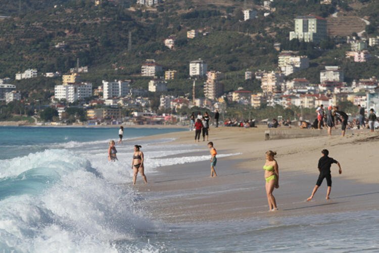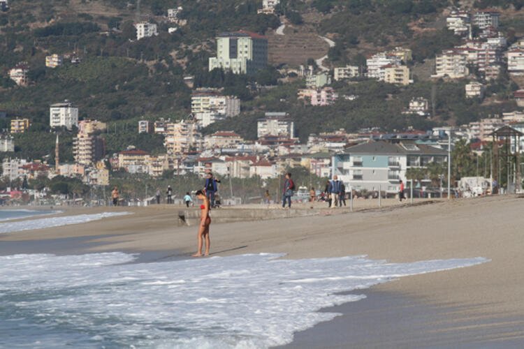 Aralık ayının sonuna gelinmesine olmasına rağmen güneşli havayı fırsat bilen turistler, Kleopatra, Keykubat ve Damlataş plajlarında denize girerek güneşlenmenin keyfini yaşadı.