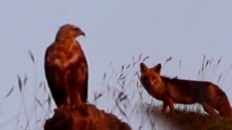 Öte yandan, Berçelan Yaylası Seyithan Gölü’ne doğa yürüyüşüne çıkan doğa fotoğrafçısı Emin Noyan ve arkadaşları da bir taşın üzerinde duran kaya kartalını ve kartala doğru gelen bir çakalı görüntüledi. Çakalın yaklaştığını fark eden kaya kartalı uçarken, çakal da kartalın konduğu taşı kokladıktan bir süre sonra ortalıktan kayboldu.